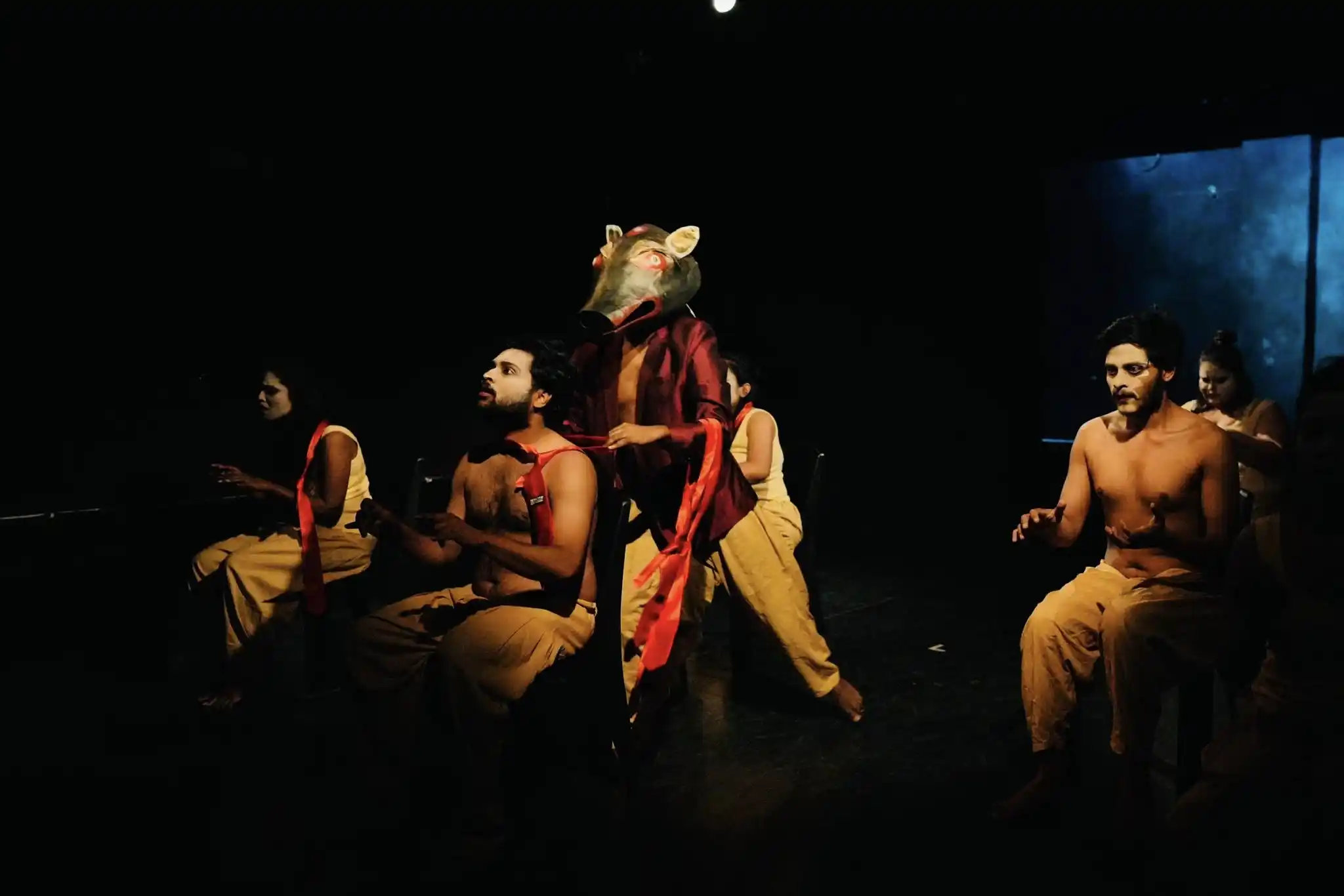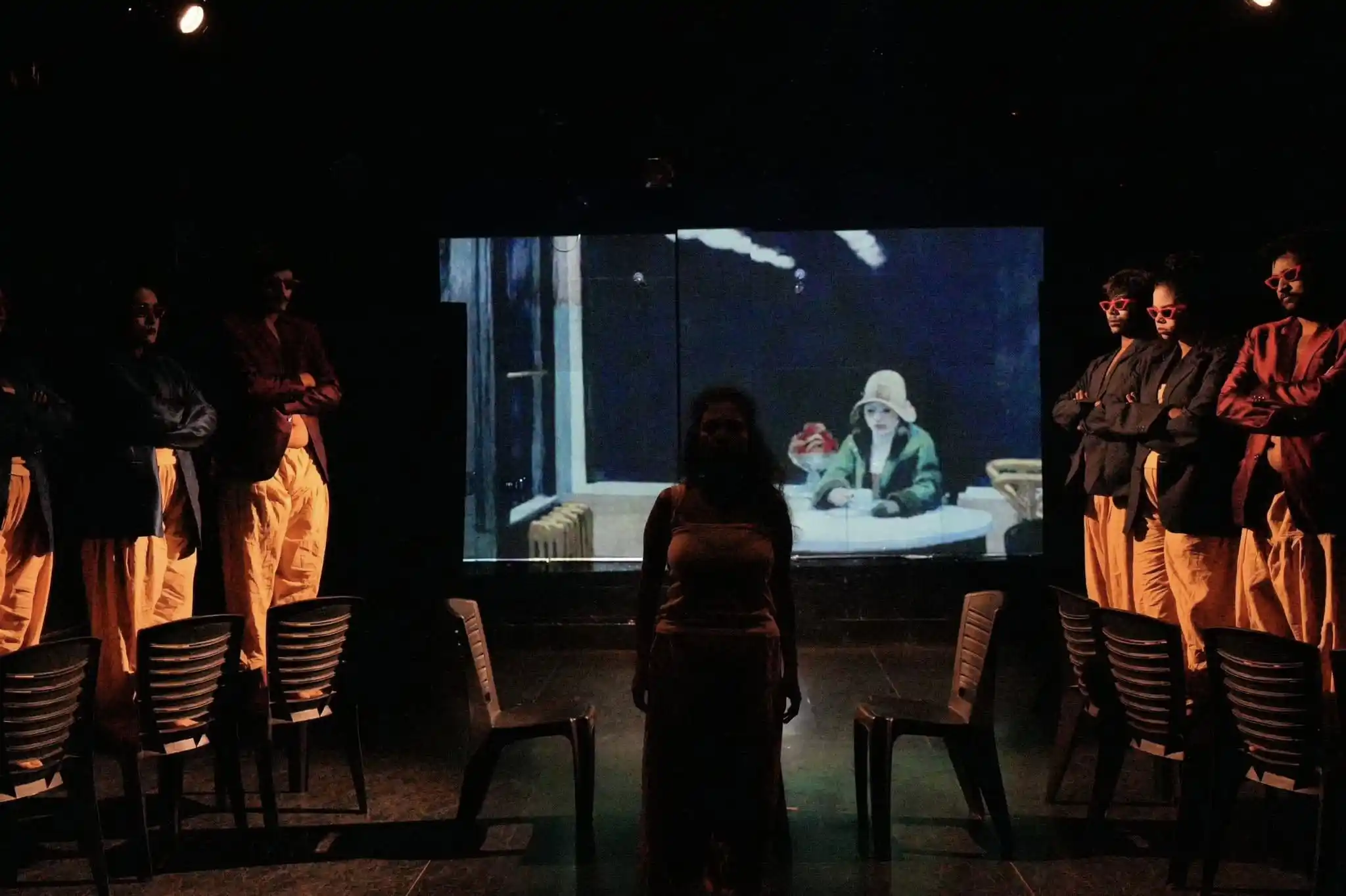 ফর্মের এই রূঢ় রাজনৈতিক বয়ানকে মঞ্চে রক্তমাংসের বাস্তবতা দিয়েছে অভিনেতাদের এক আশ্চর্য, নিরলস যূথবদ্ধতা। যেহেতু কোনো উচ্চারিত শব্দ নেই, তাই শরীরই এখানে একমাত্র টেক্সট, একমাত্র ইশতেহার। মঞ্চে উপস্থিত অভিনেতাদের কোরাস এবং শরীরী অভিনয়ের (Physical acting) যে চূড়ান্ত নিখুঁত ও যন্ত্রবৎ চলন, তা পুঁজির পেষণযন্ত্রে পিষ্ট হওয়া মানুষের নিয়তিকেই অসামান্য দক্ষতায় মূর্ত করে তোলে। প্রতিটি পেশির টান, প্রতিটি পদক্ষেপের জ্যামিতি যেন এক একটি নীরব স্লোগান। প্রথাগত সংলাপের এই অনুপস্থিতিতে রাহুল রায়ের তৈরি করা রূঢ়, মায়াবী অথচ এলিয়েনেটিং আলোকসম্পাত ও প্রোজেক্টারের বুদ্ধিদীপ্ত ব্যবহার এবং রণিত মালাকারের বোনা সেই অস্থির, যান্ত্রিক ক্যাকোফনিই যেন এই নাটকের মূল ডায়লগ হয়ে উঠেছে। আলো ও শব্দ এখানে কেবল আবহ নয়, বরং এরা প্রত্যেকেই এক-একজন অদৃশ্য এবং আগ্রাসী অভিনেতা। আর এমন একটি শরীর-নির্ভর, ছকভাঙা এবং জটিল কোরিওগ্রাফিকে মঞ্চের পরিসরে সুচারুভাবে বেঁধে রাখার নেপথ্যে সহকারী নির্দেশক হিসেবে দেবযানী চক্রবর্তীর অবদান অত্যন্ত জোরালো। তাঁর সূক্ষ্ম পরিমিতিবোধ গোটা প্রোডাকশনটির নৈরাজ্যিক কাঠামোকে এক দারুণ ভারসাম্য এবং স্থায়িত্ব দিয়েছে।